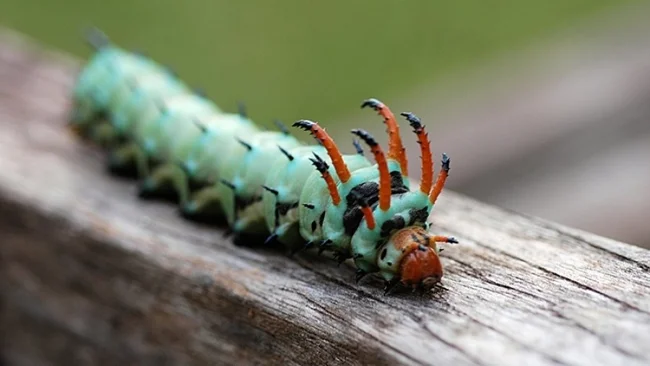 15. Королівська горіхова моль. Ця моторошна гусениця з рогами потім перетворюється на красивого метелика
