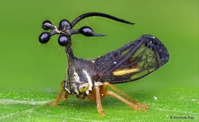 9. Комахи-горбатки роду Bocydium. Виділяються своїм великим розгалуженим спинним відростком