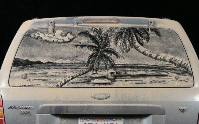 Брудна машина зазвичай дратує, але для деяких це чудова нагода прихопити пензлі зі щітками і зробити зі своєї машини витвір мистецтва. Весь той дорожній пил, який скупчується на поверхні авто - прекрасне полотно.