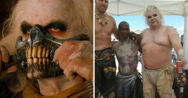 Х'ю Кіяс-Берн без маски на зйомках фільму «Шалений Макс: Дорога люті» (2015).