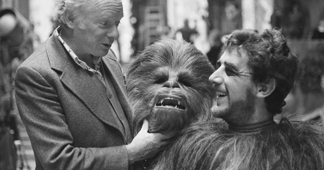 Пітер Мейхью без маски на зйомках оригінальної трилогії «Зоряних війн».