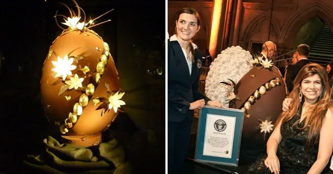 Шоколадне яйце було зроблено із шоколаду Amedei та їстівного сусального золота. У начинці десерту містився шоколад та трюфелі. На його виготовлення пішло аж три дні. Важила вся ця пишність 50 кілограмів.