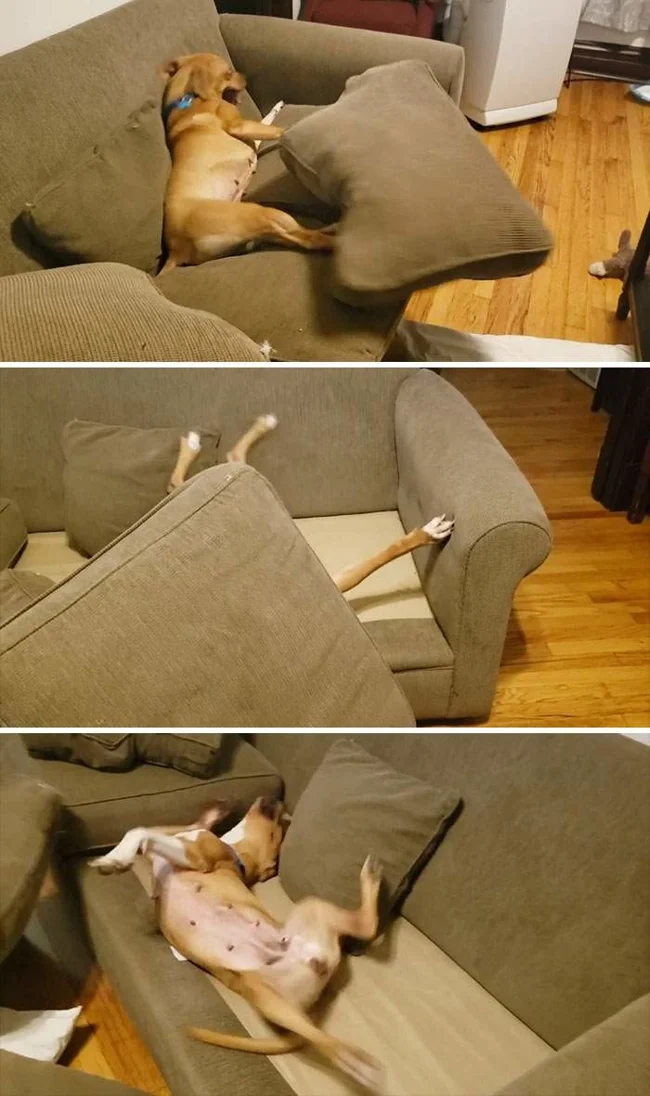 Цьому песику заборонили сидіти на дивані, тому він ставить туди шматочок шкіри.