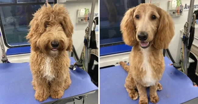 Наша 9-річна Голдендудл уперше побувала у грумера після карантину. Інший наш собака гавкав на нього, коли він прийшов додому