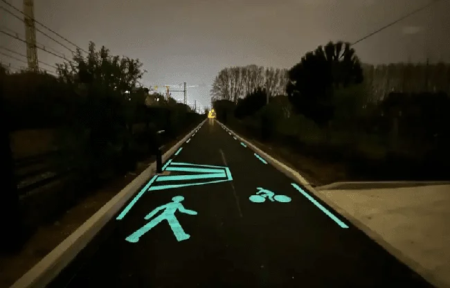 Прототип велодоріжки з фотолюмінесцентною розміткою, Монпельє, Франція.