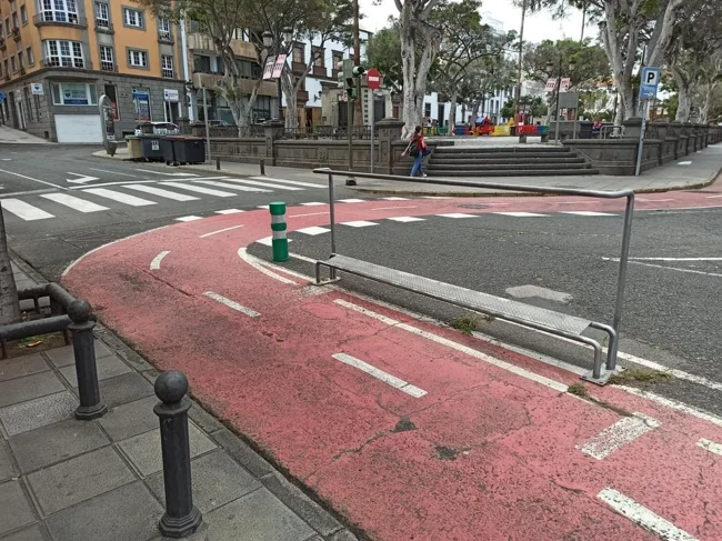 Металеві перила, які дозволяють велосипедистам тримати рівновагу, стоячи біля світлофора, Іспанія
