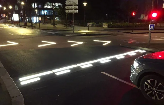 Стовпчики, що світяться на цьому маленькому пішохідному переході у Франції