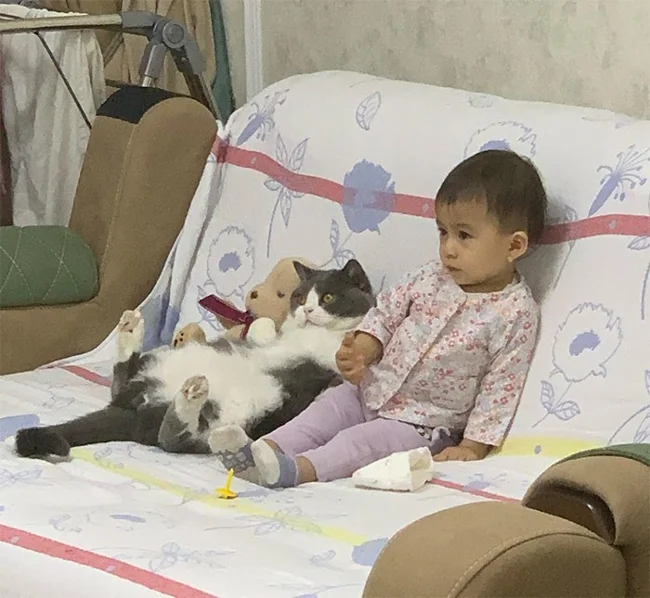 Всі власники кішок знають, що ці начебто горді і байдужі вихованці здатні заглушити будь-яку смуток і тугу, варто їм тільки застрибнути на коліна і звернутися клубочком, що муркотить. Вусаті няньки з цієї добірки явно в курсі своїх магічних здібностей і не соромляться ними скористатися, щоб втішити та розважити своїх наймолодших власників.
