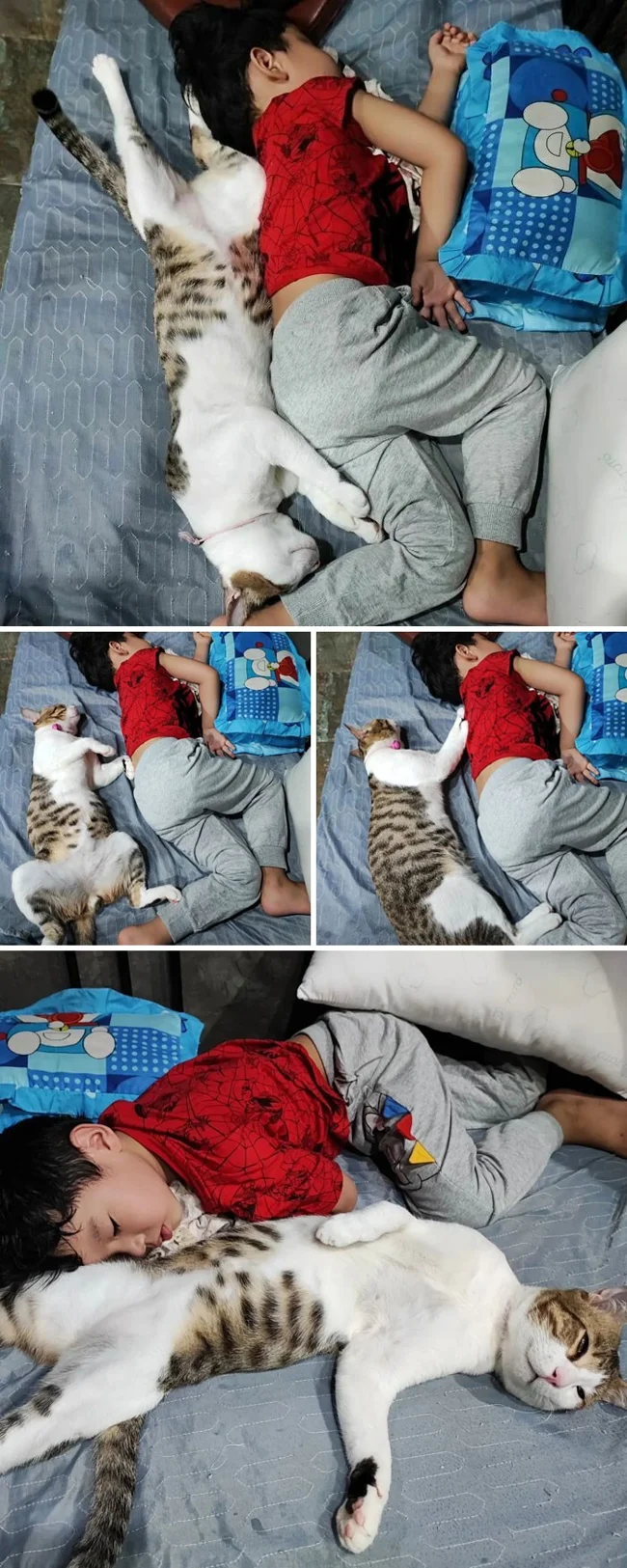 21. "7 років тому. Я завжди дорожитиму цим спогадом і фото. Зейну зараз 12, а Лоли більше немає з нами. Вона була найласкавішою кішкою, а Зейн був її дитиною"