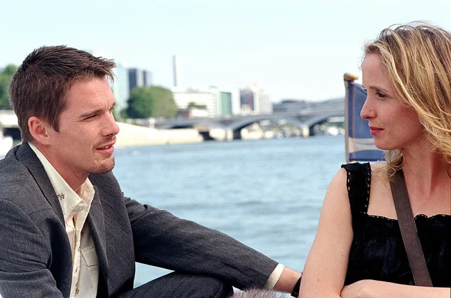 Ітана Хоук і Жюлі Дельпі зустрічаються через 9 років після подій першого фільму («Перед світанком», 1995) і 80 хвилин гуляють Парижем, знаючи, що скоро знову розлучаться.