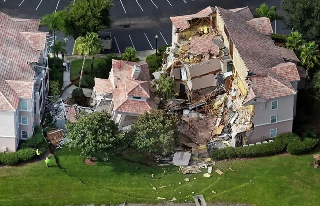 Готель Summer Bay у Клермонті, Флорида, 12 серпня 2013 р. У гостей було всього 10–15 хвилин, щоб вибігти з будівлі, що провалюється.