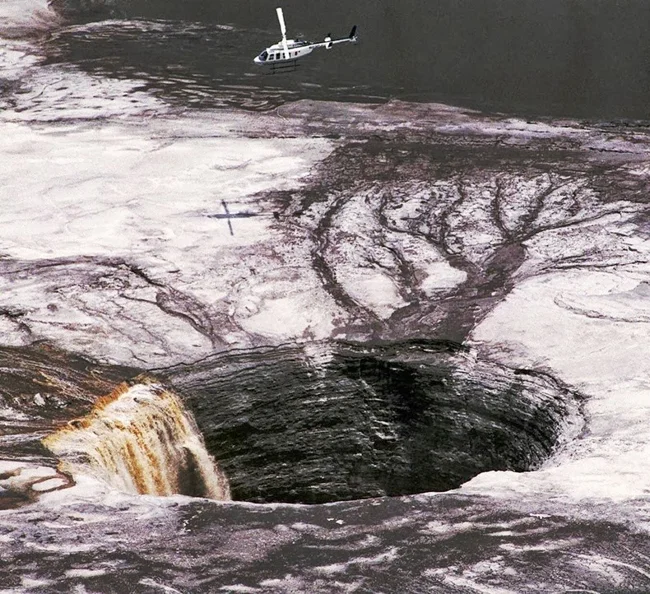 Вертоліт над лійкою шириною 36 метрів та глибиною 54 метри у Новому Уельсі, 29 червня 1994 року.