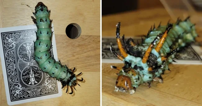Це Рогатий диявол - личинка Королівського метелика. На жаль, їхня кількість стрімко скорочується. Подивіться, вони дуже гарні, коли перетворюються на метелика.