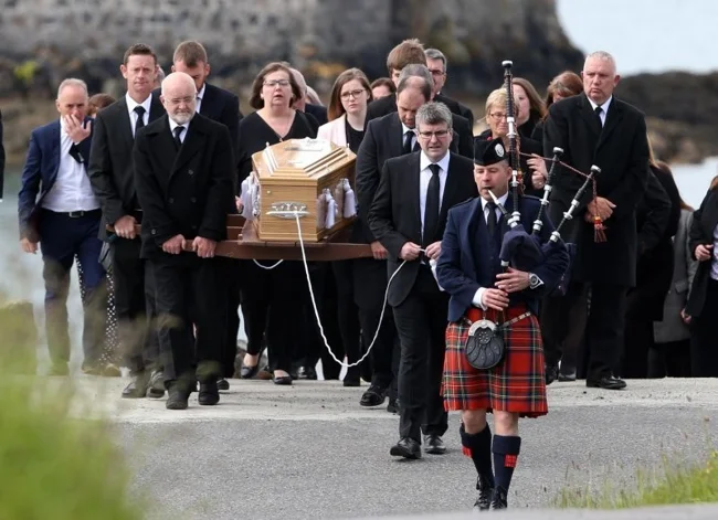 У Шотландії померлого проводжають за допомогою традиційного танцю "рингу", в якому люди тримаються за руки і ходять навколо могили чи багаття, співати пісні та прощатися з померлим. А попереду процесії йде людина, яка дзвонить у дзвін, щоб відлякати злих духів. І неодмінна волинка!