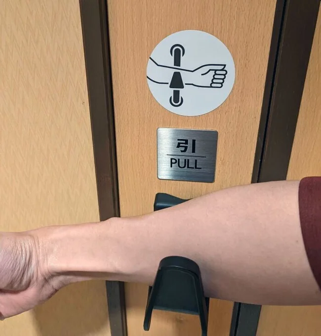 Ручка в вбиральні спеціально зроблена так, щоб можна було не забруднити щойно помиті руки