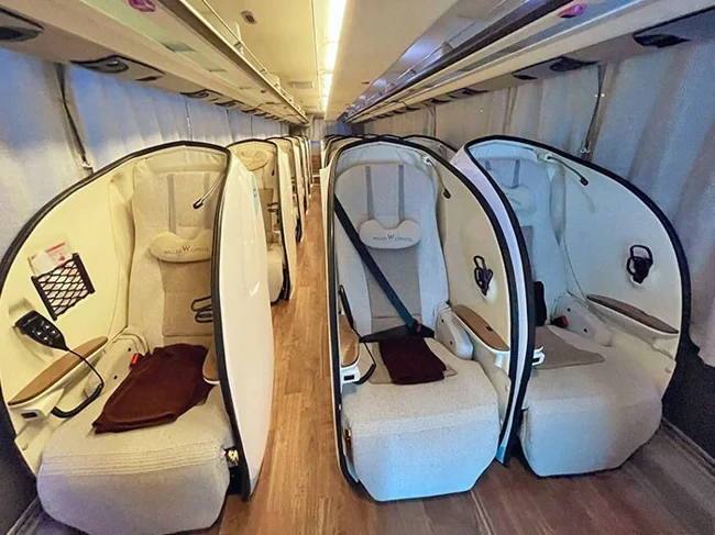 Оббивка сидінь у японському громадському транспорті нагадує про необхідність поступатися місцям жінкам з дітьми та інвалідам. ![]()