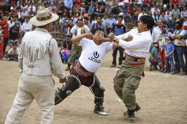 Зустріч Нового року у Перу – це для любителів екстриму. Тут дуже цікаво "залишають все погане у старому році": місцеві жителі влаштовують масові новорічні бійки, в яких беруть участь і чоловіки, і діти, і жінки. Всі із задоволенням мутують один одного, вважаючи, що якщо самим побити один одного за погані вчинки у році, що минає, то в новому доля буде до них милостива.