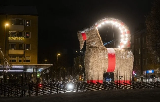 Люблять європейці спалювати на новий рік. І шведи також. Ритуальному спаленню наражають величезного 13-метрового солом'яного "Євльського цапа".