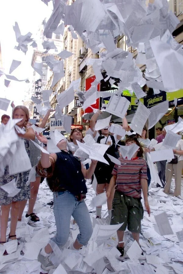 Ці хлопці також своєрідно прощаються зі старим роком: в останній день року вони викидають із вікон непотрібні документи, старі календарі, бланки. Вже до середини 31 грудня весь діловий квартал Буенос-Айреса покритий папером. Ніхто не знає, звідки взялася ця традиція і що вона має символізувати. Проте смішно.