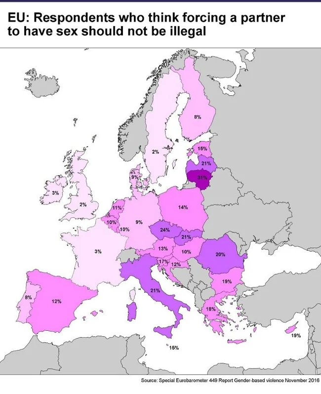 20. Люди, які вважають, що примус партнера до сексу не повинен вважатися незаконним. Опитування щодо ЄС