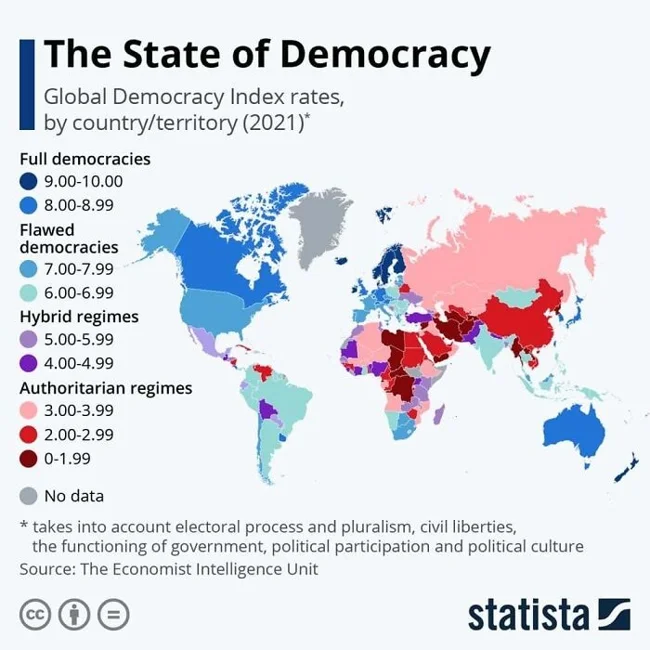 13. Країни світу за індексом демократії, 2021 рік