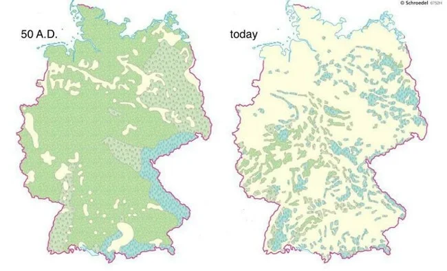 22. Ліси в Німеччині: 50 рік нашої ери в порівнянні з сьогоднішнім днем