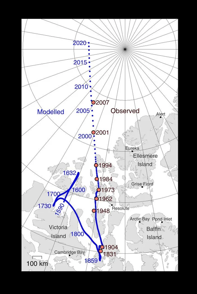 11. Положення Північного магнітного полюса з 1590 року