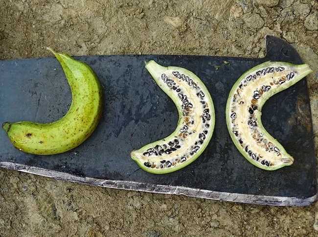 Близько 7000 років тому банани були м'ясистими фруктами без кісточок, які ми знаємо сьогодні. Їхня м'якоть була заповнена чорним насінням і майже неїстівна.