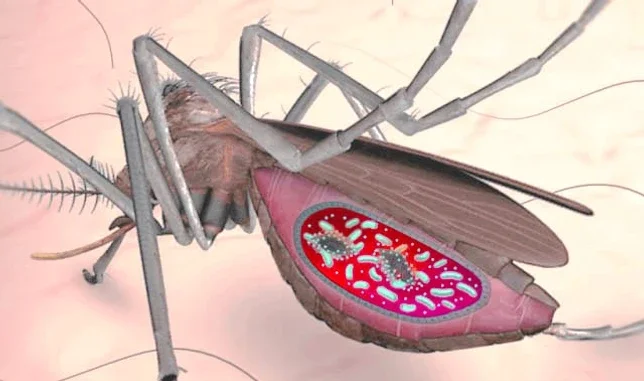 Коли інфікована самка кусає людину, відбувається зараження організму паразитами Plasmodium falciparum. Вони вражають печінку, внаслідок чого страждають червоні кров'яні тільця, які відповідають за постачання кисню клітин, тканин та органів.
