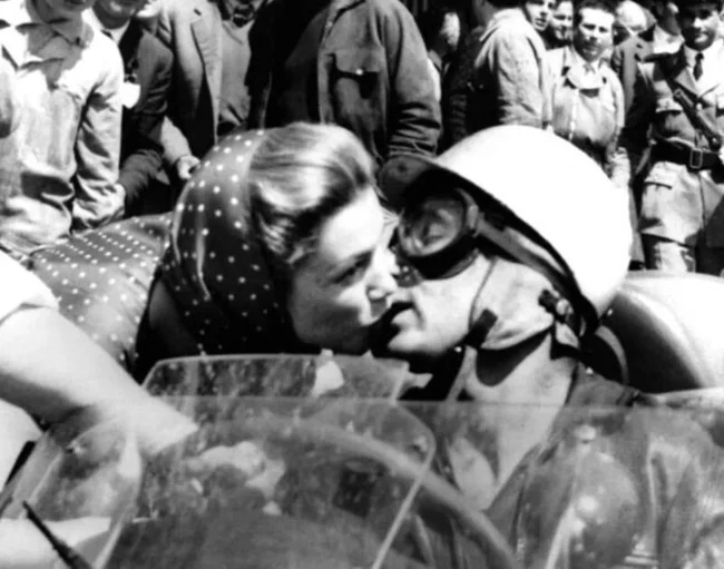 «Поцілунок смерті» гонщика Альфонсо Де Портаго та його нареченої Лінди Крістіан. Портаго розбився на смерть невдовзі після старту