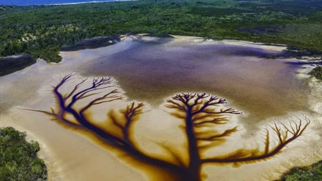 В австралійське озеро Какора після паводків іноді потрапляє олія чайного дерева. Через це на поверхні утворюється така дивовижна картина, створена виключно кистями природи.