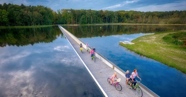 У Бельгії є досить цікава велосипедна доріжка завдовжки 200 метрів, що проходить через великий ставок у заповіднику. Що ж у ньому особливого? Під час їзди обличчя людини опиняється на одному рівні з водою, тож здається, ніби велосипедист заїхав у ставок із головою.