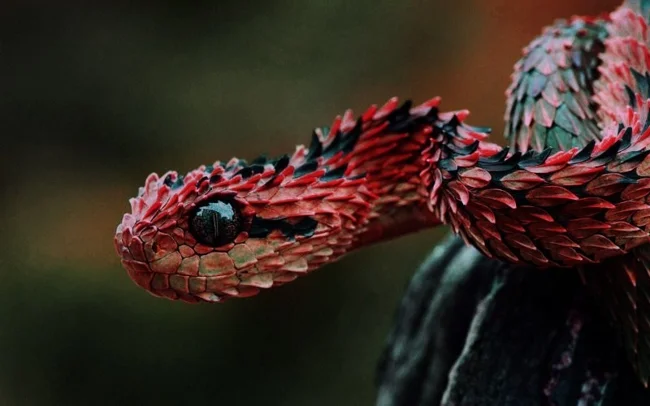 Чагарникова гадюка має колючки по всьому тілу і добре маскується в чагарниках. Чим не дракон у мініатюрі?