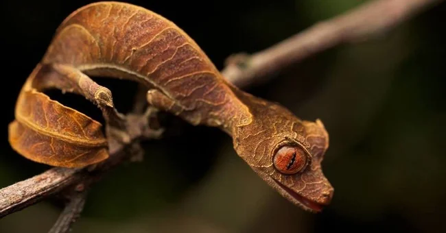 Фантастичний листохвостий геккон своїм маскуванням імітує жовтий осінній лист.