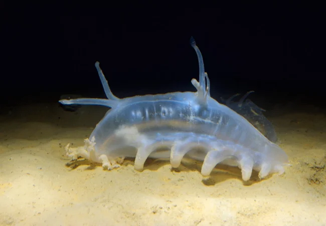 Морський огірок - скотопланес не любить жити на самоті, тому заводить собі як домашніх тварин крабиків, з якими, ніби з собачками, ходить дном океану, збираючи їжу.