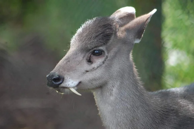 Олень з іклами? Чубатий олень. Мало того, що роги, точніше маленькі ріжки, у нього знаходяться під чубком, так і з іклами він схожий на вишкіреного щура.
