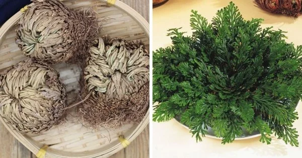 Дивовижна рослина, яка вміє в буквальному сенсі воскресати з висушеного стану. Роза Єрихона впадає у своєрідну «спячку», якщо рідини для підтримки життя виявляється недостатньо. На фото троянда до та після поливу.