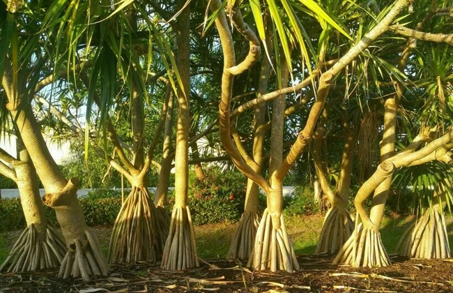 Пандан називають хибним ананасом, проте на відміну від плодів хибного банана плоди пандану можна і потрібно їсти. Пандан росте на островах у Тихому океані. Невисоким деревам доводиться постійно мати справу з сильним вітром, тому пандан навчився викидати зі стовбура повітряне коріння і використовувати їх як підпори. Через це незвичайне коріння дерево іноді називають крокуючим.