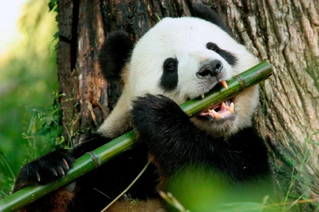 Якщо вам здається, що ви багато їсте, знайте, що вам не переплюнути 45-кілограмових панд, що проводять по 14 годин за трапезою. Ці милі хижаки з'їдають щодня від 12 до 38 кг бамбука.