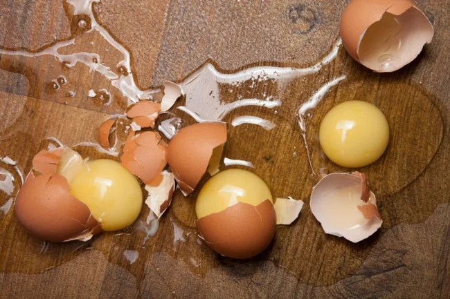 Багато хто звикли розбивати яйця гострим ножем, через що утворюються дрібні уламки, що ризикують потрапити в сковороду або тарілку. Однак цього можна позбутися. Достатньо вдарити по ньому плоскою поверхнею, а не гострою.