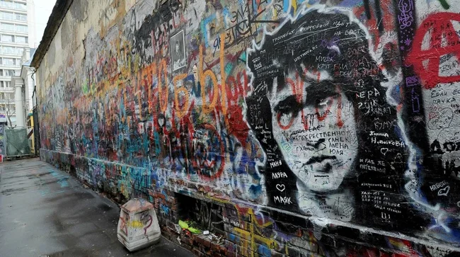 Шанувальники радянського рок-музиканта Віктора Цоя стихійно почали оформляти цей мур у Кривоарбатському провулку. Спочатку хтось розмашисто сповістив про загибель кумира. А трохи згодом з'явився напис «Цой живий». Стіну неодноразово зафарбовували, але шанувальники «Кіно» її регулярно відновлюють та продовжують використовувати як місце зборів та зустрічей.