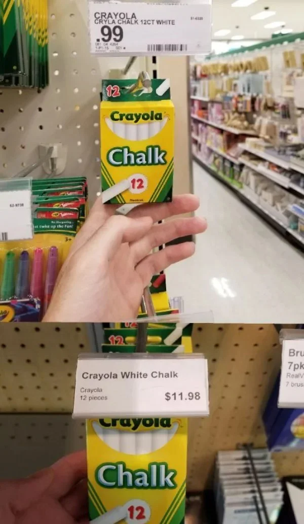 4. "Божевільна різниця в ціні на крейду в супермаркеті та в магазині на території коледжу (99 центів проти 11,98 долара")