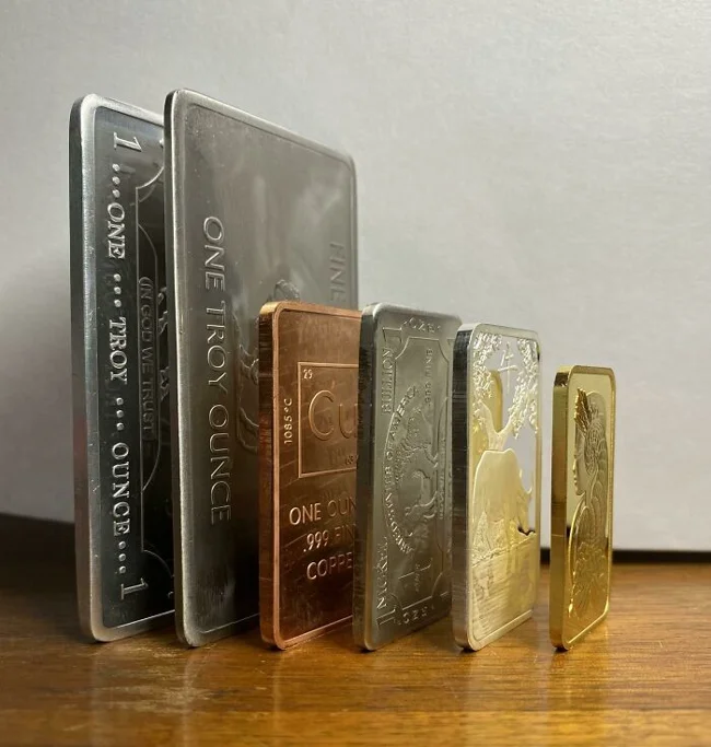 21. "Почав збирати зливки чистих металів вагою 1 унція: алюміній, титан, мідь, нікель, срібло, золото"