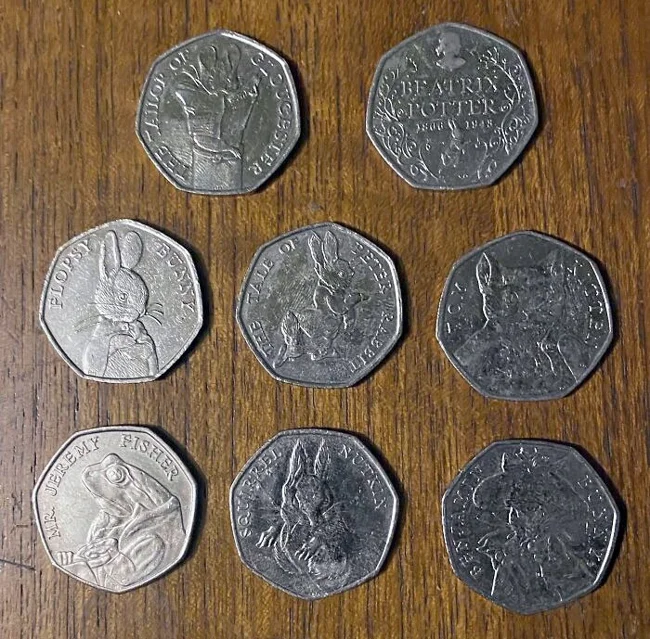 14. "Повільно збираю монети 50 пенсів з колекції Беатріс Поттер. Сьогодні ввечері знайшов монетку з Флопсі"