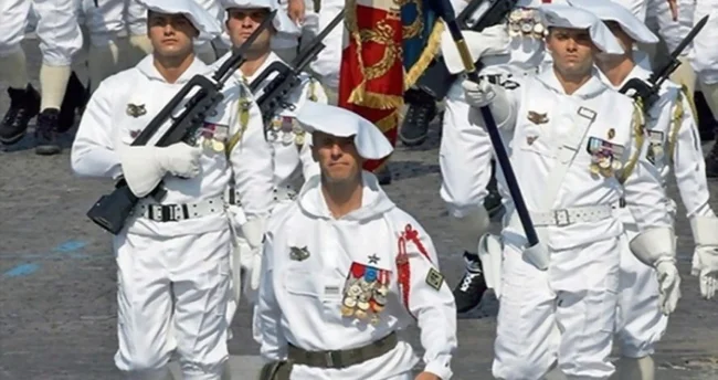 Польова форма французької армії не відрізняється оригінальністю, чого не скажеш про парадну. Найбільше в ній привертає увагу широкий білий берет, через який може скластися враження, що перед вами не морська піхота, а стрій кухарів.