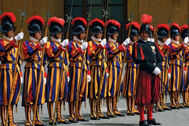 Важко уявити цю добірку без військових із Ватикану. Точніше, охорони Папи Римського, оскільки регулярної армії ця країна не має. Для цього залучається елітний найманий корпус Швейцарської гвардії, що з'явився ще 16 столітті. Щоправда, відтоді не змінилося ні призначення, ні мундир, спроектований самим Мікеланджело.