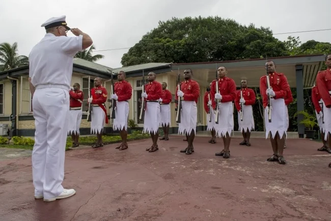 А ось почесна варта Фіджі виділяється мундиром з подертою спідницею і червоним кітелем.