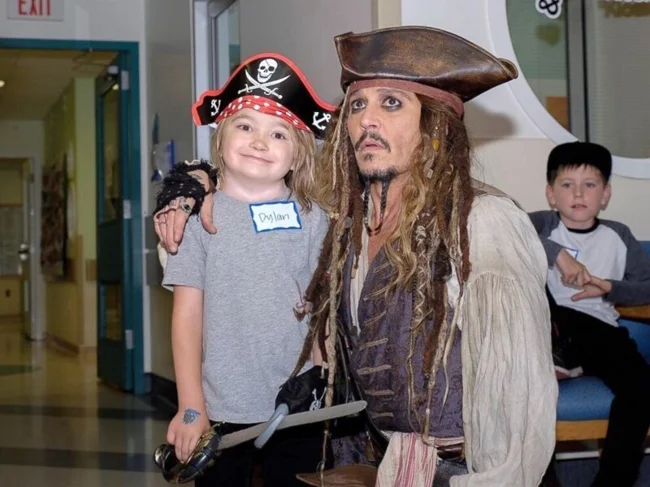 Щоб віддячити лікарні за турботу про неї, Депп перевдягся Джеком Горобцем і чотири години читав дітям казки.