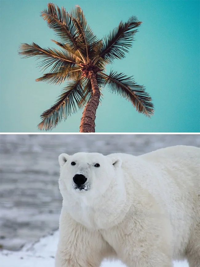 7. "В Ірландії на 53 паралелі північної широти ростуть пальми. У Канаді на 55 паралелі північної широти водяться білі ведмеді"