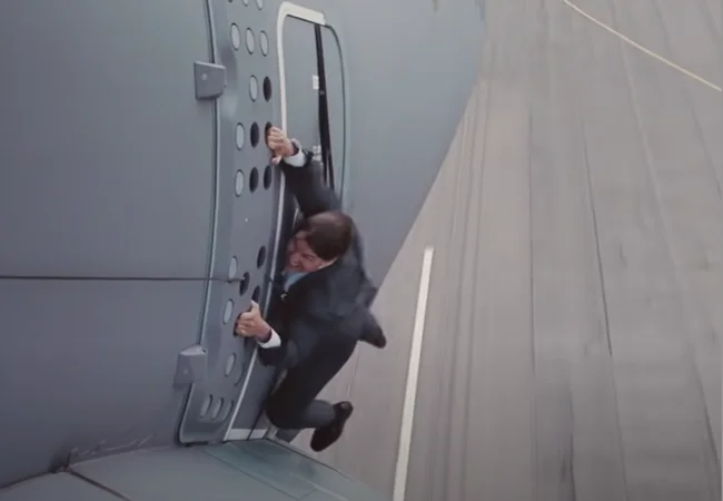 9. Це Том Круз буквально звисає з борту літака. Всі знають, що він сам виконує свої трюки, і остання частина франшизи «Місія нездійсненна» не стала винятком.